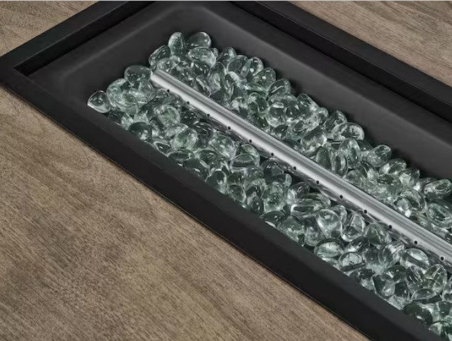 This rectangle gas fire pit has an classic style that will fit any outdoor patio. It include electric ignition system and natural lava rock decoration. You can enjoy the clean fire in your outdoor patio.